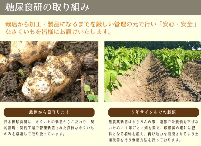 ・750ha(東京ドーム約160個分)の契約農場にて管理栽培された菊芋のみを使用。